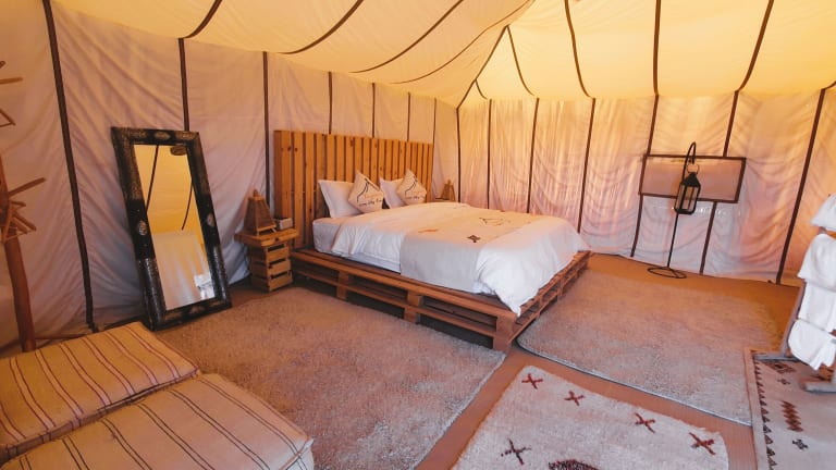 Das Boho Glamping in Merzouga bietet eine einzigartige Unterkunftserfahrung in der Wüste. Mit einem atemberaubenden Stadtblick, einem hauseigenen Restaurant und einer gemütlichen Gemeinschaftslounge können Sie hier eine entspannte Zeit verbringen. Kostenlose Parkplätze und WLAN stehen Ihnen zur Verfügung. Das Frühstück kann als Buffet oder à-la-carte genossen werden und es gibt auch die Möglichkeit eines kontinentalen Frühstücks. Das Hotel bietet zudem einen Skiverleih und einen Fahrradverleih für Aktivitäten in der Umgebung.