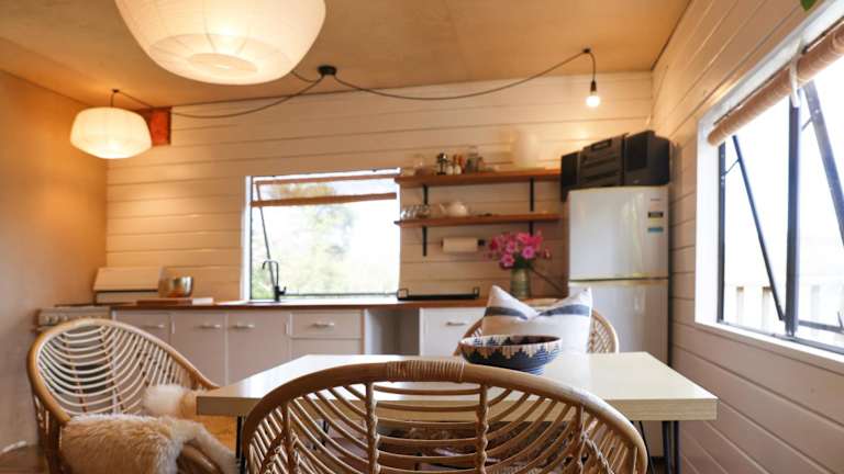 Das Boho Hill Apartment - Great Barrier Island Escape bietet eine Terrasse, auf der Sie die frische Luft und die Schönheit der Umgebung genießen können. Nutzen Sie die Möglichkeit zum Angeln in der Nähe und erkunden Sie die Natur und die atemberaubende Landschaft der Insel Great Barrier Island.
