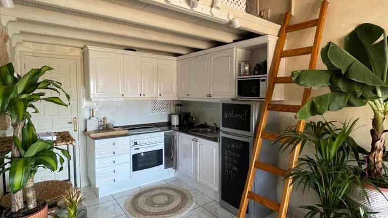 Das Apartment im Boho-Stil bietet ein gemütliches Schlafzimmer, ein stilvolles Wohnzimmer und eine voll ausgestattete Küche mit Kühlschrank und Backofen. Das Badezimmer verfügt über eine Dusche. Das Apartment ist mit kostenfreiem WLAN, Klimaanlage und einem Flachbild-TV ausgestattet. Handtücher und Bettwäsche werden gestellt, damit Sie sich wie zu Hause fühlen.