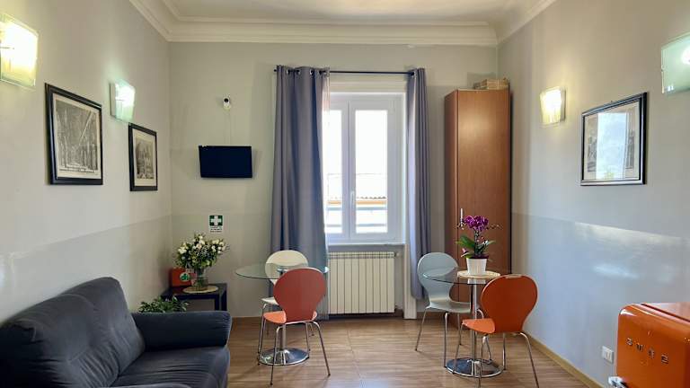 Das Bon Ton Suite ist eine moderne Pension mit einer erstklassigen Lage in Rom. Die Zimmer bieten einen atemberaubenden Blick auf die Dächer der Stadt und sind mit modernen Annehmlichkeiten wie kostenlosem WLAN und einem LCD-TV ausgestattet. Die Pension liegt nur wenige Gehminuten vom U-Bahnhof Castro Pretorio entfernt und bietet eine gute Anbindung an die wichtigsten Sehenswürdigkeiten der Stadt.