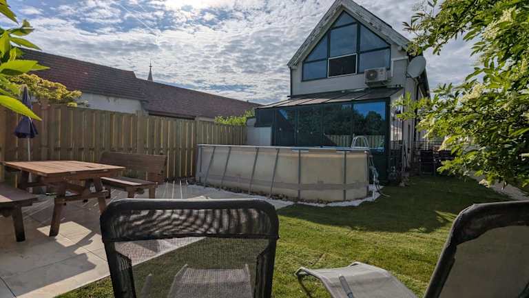 Das Ferienhaus verfügt über ein Schlafzimmer, ein Wohnzimmer sowie eine voll ausgestattete Küche mit Kühlschrank und Kaffeemaschine. Zudem ist ein Badezimmer mit Dusche und Haartrockner vorhanden. Handtücher und Bettwäsche werden bereitgestellt. Die Unterkunft ist klimatisiert und bietet Gartenblick.