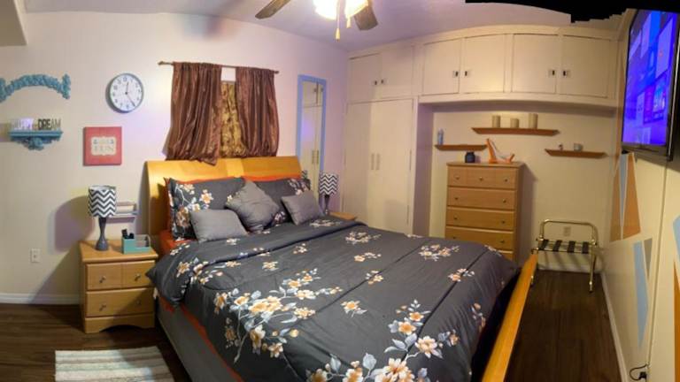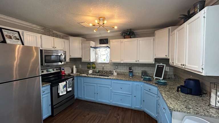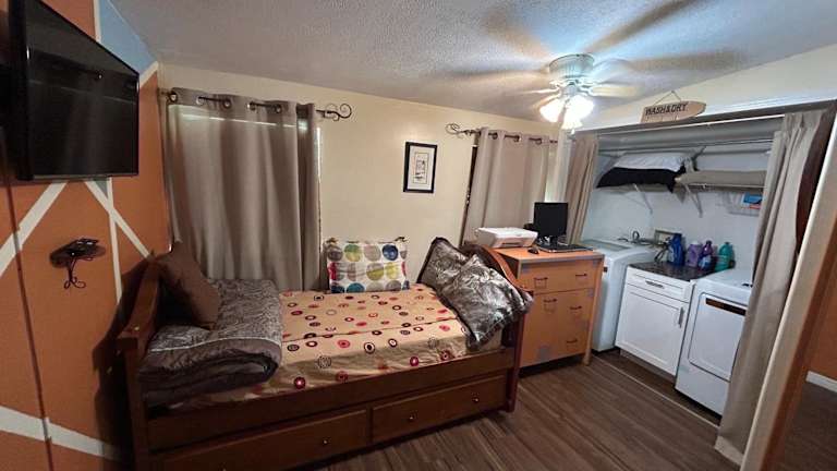 Das klimatisierte Ferienhaus im Bonne Nuit Weeki Wachee verfügt über 2 separate Schlafzimmer, ein Badezimmer mit kostenfreien Pflegeprodukten und einem Haartrockner sowie ein gemütliches Wohnzimmer. Eine voll ausgestattete Küche steht Ihnen ebenfalls zur Verfügung, um Ihre eigenen Mahlzeiten zuzubereiten. Genießen Sie den Komfort und die Privatsphäre dieses gut ausgestatteten Ferienhauses.