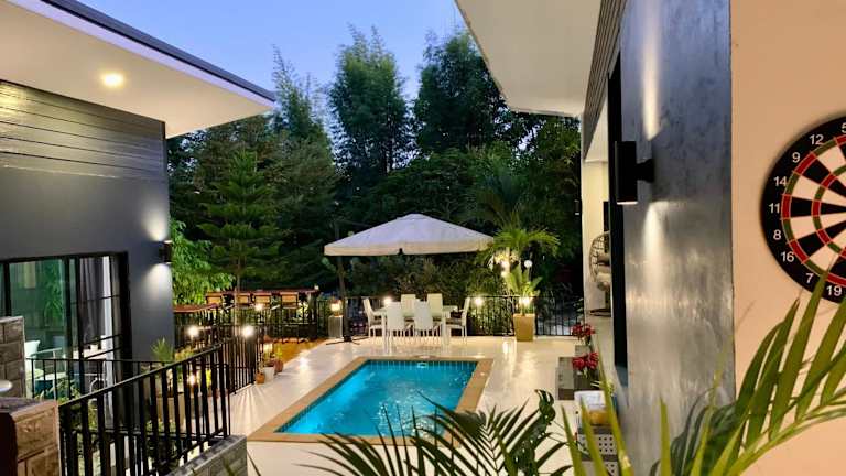 In der Bonnie Baan Pool Villa können Sie Ihren eigenen privaten Pool nutzen und im Garten entspannen. Die Umgebung bietet auch viele Möglichkeiten für Outdoor-Aktivitäten wie Wandern und Radfahren. Erkunden Sie die nahegelegenen Sehenswürdigkeiten und erleben Sie die Schönheit der Natur in Mae Rim.