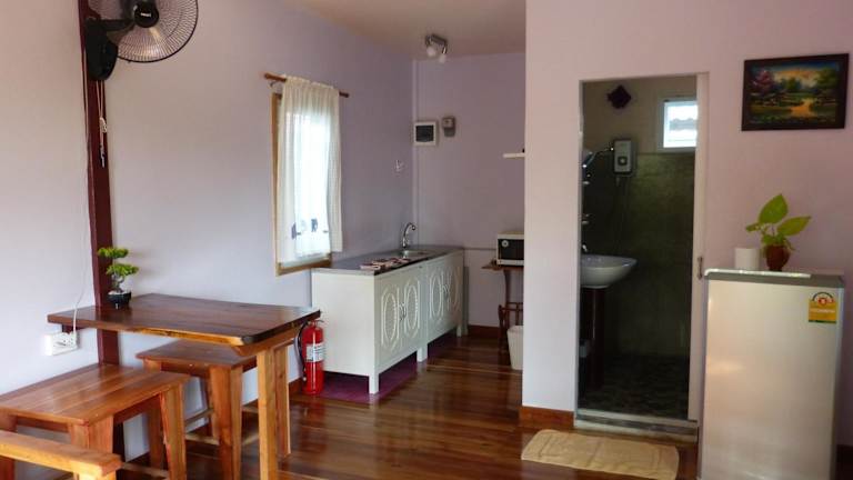 Die Zimmer in der Unterkunft sind mit einem Balkon ausgestattet, der Blick auf den Garten bietet. Jedes Zimmer verfügt über Annehmlichkeiten wie Klimaanlage, Kühlschrank, Mikrowelle, Wasserkocher, Dusche, Haartrockner und Kleiderschrank. Zudem besitzt jedes Zimmer ein eigenes Badezimmer und ist mit Bettwäsche ausgestattet.