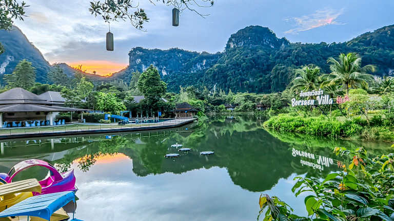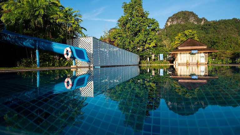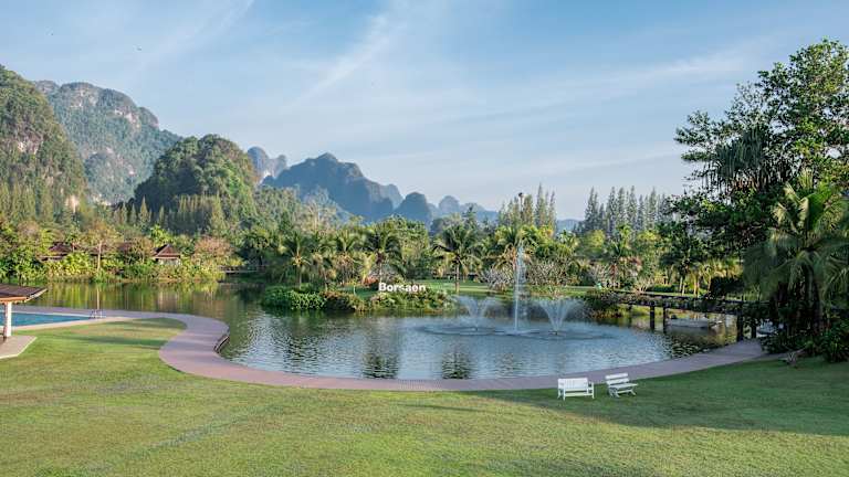Eine sehr schöne Anlage mit über 20 Pool Villen, die zwischen den Kaarst Bergen um einen See herum gruppiert sind. Unsere Villa hatte in jeweils eigenen Gebäuden einen großen Wohnraum und das Schlafzimmer mit Bad, L-förmig um den kleinen Pool angeordnet. Es gibt Fahrräder um die landschaftlich sehr schöne Umgegend mit Höhlen und Wasserfällen zu erkunden. Sehr großer Pool mit wenigen Liegen als Gemeinschaftspool. Großes Restaurant mit umfangreicher Garten, gutes thailändisches Essen zu moderaten Preisen für Resort…