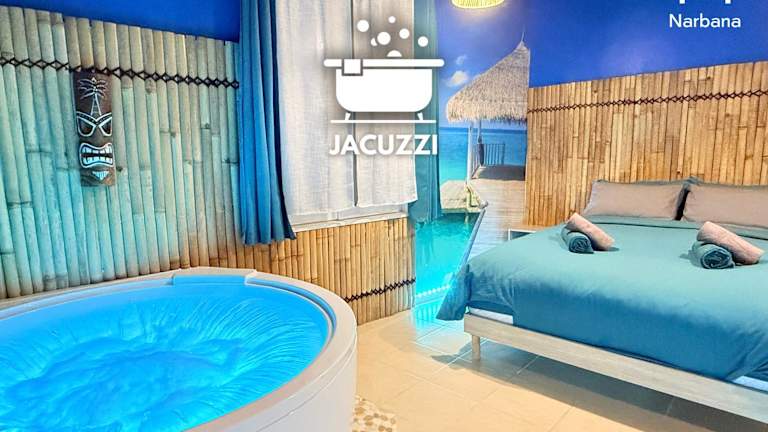 Die Narbnb - BORA-BORA SUITE - Jacuzzi - Centre - Clim bietet Übernachtungsmöglichkeiten mit kostenlosem WLAN, Klimaanlage und einem Spa- und Wellnesscenter. Die Ausstattung umfasst einen Conciergeservice sowie Möglichkeiten zur Nutzung eines Whirlpools.