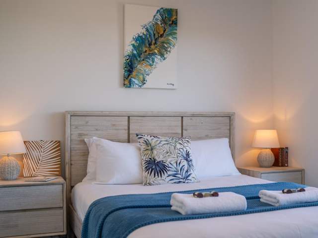 Bordaga Unit 1 - Scamander bietet eine verglaste Veranda und einen Balkon. Die Ferienwohnung ist klimatisiert und umfasst zwei Schlafzimmer, ein Wohnzimmer sowie eine voll ausgestattete Küche, die mit Kühlschrank und Wasserkocher ausgestattet ist.