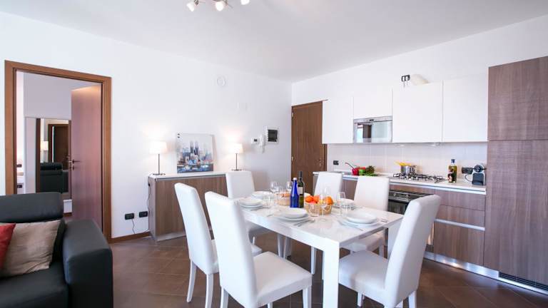 Borgo La Sorgente - Dolce Vita bietet Übernachtungsmöglichkeiten in einer Ferienwohnung mit Seeblick. Die Unterkunft verfügt über eine Terrasse sowie eine voll ausgestattete Küche. Kostenlose Privatparkplätze stehen zur Verfügung.