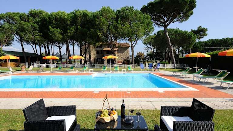 Verbringen Sie einen entspannten Urlaub im Boschetto del Lago in Castiglione del Lago. Hier können Sie sich im Pool erfrischen, den Garten genießen und in gemütlichen Unterkünften mit kostenfreiem WLAN entspannen. Der Bauernhof bietet zudem Annehmlichkeiten wie eine voll ausgestattete Küche und einen Kinderspielplatz. Die Umgebung lädt zu Aktivitäten wie Tischtennis und Radfahren ein. Erkunden Sie die nahegelegenen Sehenswürdigkeiten wie die Piazza Grande oder die Kathedrale von Perugia.