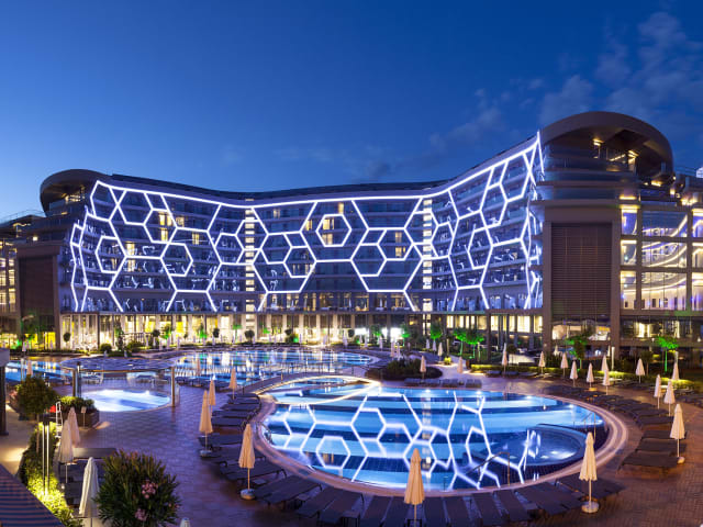 Das Bosphorus Sorgun Hotel in Side bietet Ihnen eine ideale Lage, nur 350 m vom Strand entfernt, sowie eine Vielzahl von Einrichtungen, darunter ein Restaurant, einen Wasserpark und einen Innen- und Außenpool. Das Hotel verfügt über komfortable Zimmer mit Annehmlichkeiten wie WLAN und Sat-TV. Genießen Sie ein reichhaltiges Frühstücksbuffet und nutzen Sie die Freizeiteinrichtungen wie das Fitnesscenter und den Kinderspielplatz. Das Hotel bietet außerdem Abendunterhaltung und einen 24-Stunden-Zimmerservice.