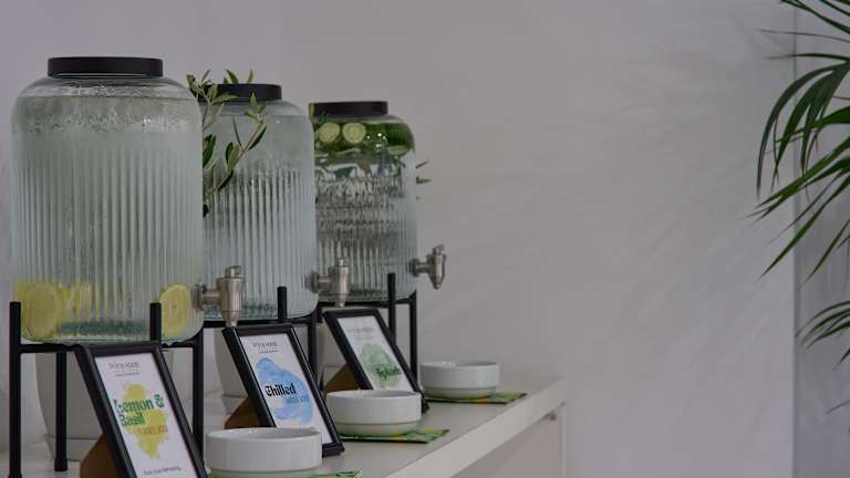 Das Hotel bietet verschiedene gastronomische Möglichkeiten, darunter ein Restaurant, eine Bar und ein Café. Der Service umfasst ein Buffet- oder amerikanisches Frühstück sowie die Option auf Halbpension. Die Küche reicht von amerikanischen bis griechischen und mediterranen Speisen, mit der Möglichkeit vegetarische, milchfreie und glutenfreie Gerichte auf Anfrage zu erhalten.