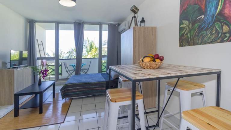 Genießen Sie einen wundervollen Aufenthalt im Boucan Beach Joli Studio mit Meerblick in Boucan Canot. Das klimatisierte Apartment bietet eine Terrasse, kostenfreie Privatparkplätze und eine voll ausgestattete Küche. Entspannen Sie sich auf dem Balkon und genießen Sie die Nähe zum Strand Grand Fond. Erkunden Sie auch die umliegenden Attraktionen wie das House of Coco und den Botanischen Garten Mascarin.