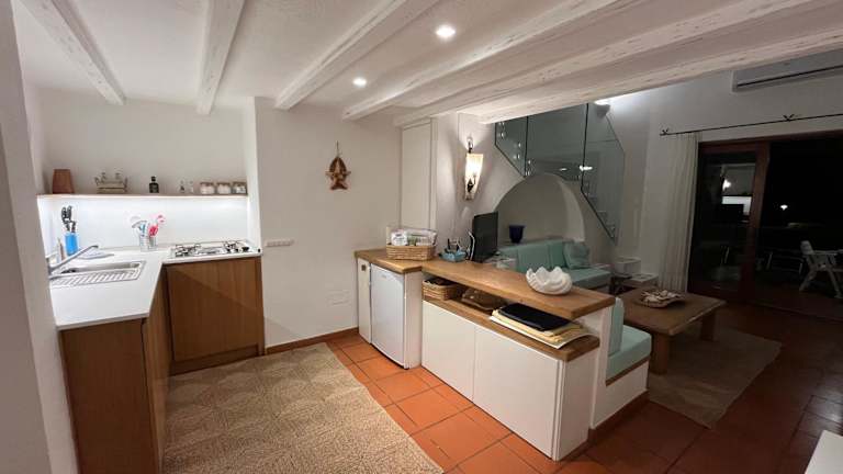 Die Küche der Villa ist mit einem Kühlschrank und einem Geschirrspüler ausgestattet. Es sind keine Informationen zu Verpflegungsmöglichkeiten vorhanden.