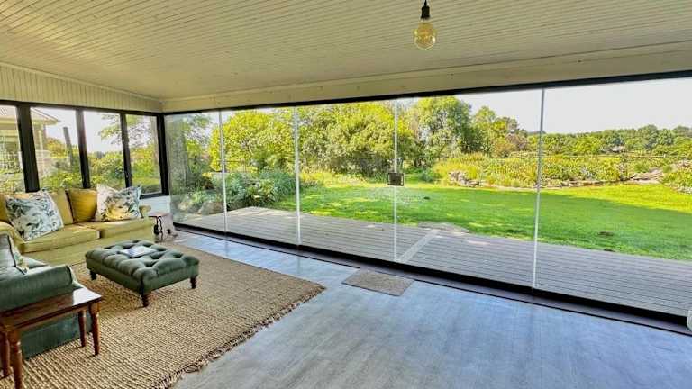 Das Ferienhaus Bourne View ist eine reizvolle Unterkunft mit einem geräumigen Wohnbereich und einer Veranda.