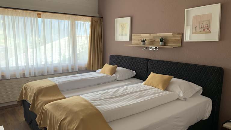Das Hotel bietet 38 Nichtraucherzimmer auf 4 Etagen, die bequem mit dem Aufzug erreichbar sind. Jedes Zimmer verfügt über einen Balkon, auf dem Sie entspannen und die frische Bergluft genießen können. Zur Ausstattung gehören auch ein Safe, eine Minibar, ein Schreibtisch und ein Fernseher. WLAN steht in den öffentlichen Bereichen des Hotels kostenlos zur Verfügung.