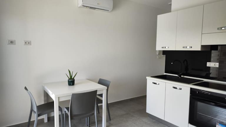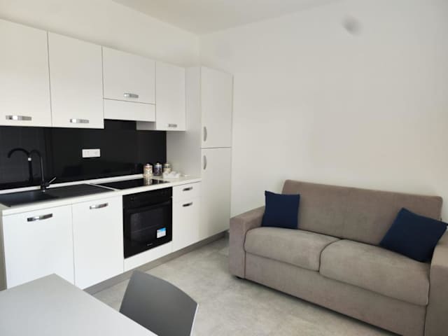 Die Ferienwohnung besteht aus einem Schlafzimmer und einem Wohnzimmer. Sie verfügt über eine voll ausgestattete Küche mit Kühlschrank und Kaffeemaschine. Das Badezimmer ist mit einem Bidet und einer Dusche ausgestattet. Handtücher und Bettwäsche werden in der Unterkunft zur Verfügung gestellt.