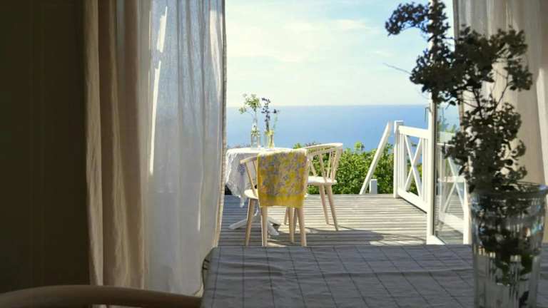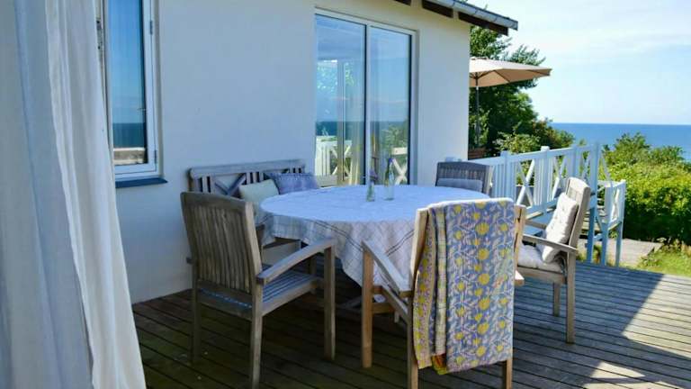 Das Ferienhaus verfügt über zwei gut ausgestattete Schlafzimmer, ein Badezimmer, eine voll ausgestattete Küche sowie einen TV. Es bietet zusätzlich Bettwäsche und Handtücher. Eine Terrasse mit Meerblick rundet die Ausstattung ab.