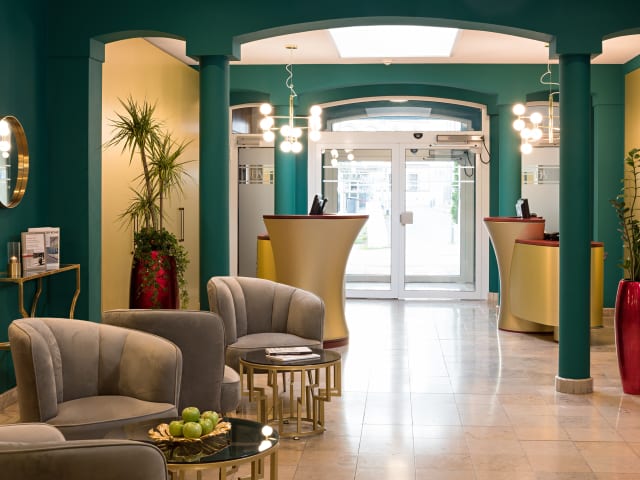 In unserer liebevoll restaurierten Stadtvilla - nur 100 Meter vom Goethehaus entfernt – trifft die klassische Eleganz der Goethezeit auf modernen Chic in Gold und Smaragdgrün. Der große Baumeister Clemens Wenzeslaus Coudray entwarf unseren Amalienhof. Die Stil- Möbel aus 3 Jahrhunderten erzählen ihre Geschichten. Die Lilie, ein typisches Element des Biedermeier, finden Sie in der Wand- und Fußbodengestaltung wieder. Unser Boutique-Hotel kombiniert das Besondere mit dem gewissen Etwas, das einen Besuch zu einem Erlebnis macht.