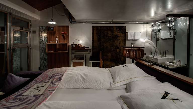 Die Zimmer im Backstage Boutique SPA Hotel sind individuell und stilvoll eingerichtet. Jedes Zimmer verfügt über einen eigenen Balkon, einen offenen Kamin, einen CD- und DVD-Player, eine Minibar und Bademäntel. Die meisten Zimmer bieten zudem ein gemütliches Sofa und eine freistehende Badewanne mit herrlichem Blick auf die Schweizer Alpen.