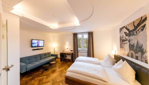 Wir bieten Ihnen: - 50 individuell designte Hotelzimmer mit Highspeed-Glasfaser-Internet und ticketfreiem W-Lan sowie Flachbild-TV mit Smart TV Zugang - Einen modernen, klimatisierten Tagungsraum bis 60 Personen je nach Bestuhlung - Unser freundliches, engagiertes Team, welches uns am Herzen liegt - Kostenfreie und kostenpflichtige Park- und Garagenplätze direkt am Hotel - Busparkplatz direkt am Hotel auf unserem eigenen Gelände
