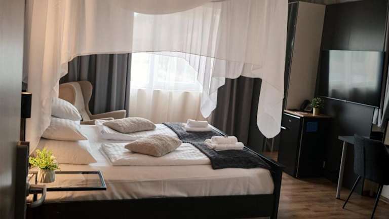 Das Boutique Hotel & Event Center bietet verschiedene Annehmlichkeiten wie eine Gemeinschaftslounge, einen Kinderspielplatz und einen Conciergeservice. In der Umgebung gibt es auch viele Möglichkeiten für Freizeitaktivitäten wie Sightseeing, Shopping und kulturelle Veranstaltungen. Das Personal an der Rezeption spricht Deutsch, Englisch und Ungarisch und steht Ihnen jederzeit zur Verfügung, um Ihnen bei Fragen oder Anliegen behilflich zu sein.
