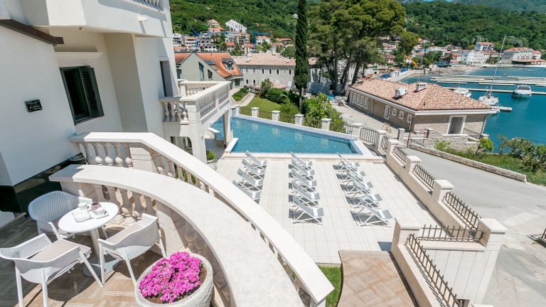 Das Boutique Hotel Kredo in Herceg Novi ist die ideale Wahl für einen erholsamen Urlaub mit Blick auf die atemberaubende Bucht von Kotor. Freuen Sie sich auf einen Außenpool, ein Restaurant und eine Bar sowie kostenfreies WLAN und Privatparkplätze. Die klimatisierten Zimmer sind modern eingerichtet und verfügen über einen Flachbild-TV sowie ein eigenes Bad mit Dusche. Einige Zimmer bieten zudem einen Balkon oder eine Terrasse. Entspannen Sie auf der Sonnenterrasse mit Liegestühlen und Sonnenschirmen oder erkunden Sie die Umgebung beim Tauchen und Angeln. Das Zentrum von Herceg Novi ist nur 2,3 km entfernt und der Flughafen Tivat liegt in einer Entfernung von 27 km.