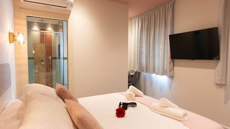 Die Zimmer sind mit einem Kleiderschrank, einem Flachbild-TV, Klimaanlage, Schallisolierung, Bettwäsche und Handtüchern ausgestattet. Es gibt ein eigenes Badezimmer mit Dusche und kostenlosen Pflegeprodukten. Ausgewählte Zimmer verfügen über einen Balkon mit Meerblick oder eine Terrasse.
