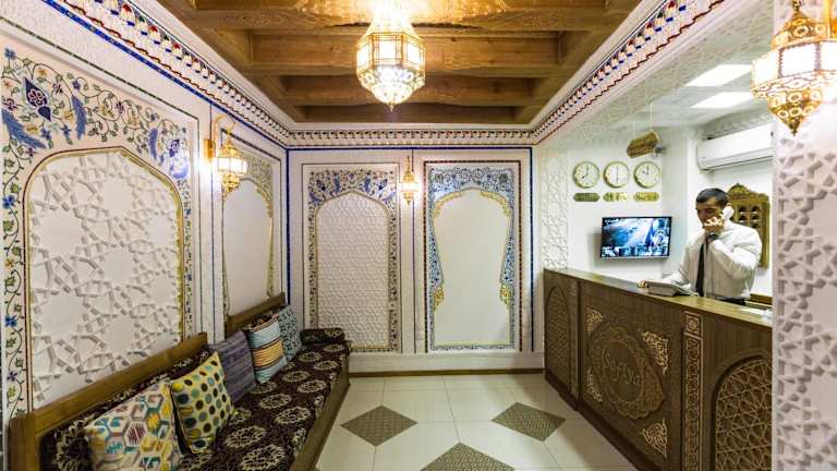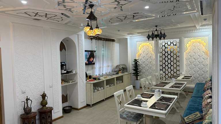 Das Boutique Safiya befindet sich in Buchara, einer historischen Stadt mit einer reichen kulturellen und architektonischen Geschichte. Die Unterkunft ist ideal gelegen und bietet einen einfachen Zugang zu den wichtigsten Sehenswürdigkeiten der Stadt. Entdecken Sie die prächtigen Moscheen, Medresen und Paläste, die das Erbe der Stadt ausmachen. Der internationale Flughafen Buchara ist nur eine kurze Autofahrt entfernt, was die Anreise zum Hotel sehr bequem macht.