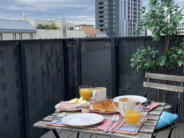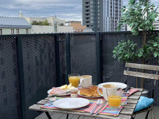 Die Ferienwohnung umfasst 1 Schlafzimmer und 1 Badezimmer. Zur Ausstattung gehören Bettwäsche, Handtücher, ein Flachbild-TV mit Kabelkanälen, ein Essbereich sowie eine voll ausgestattete Küche. Zudem bietet die Wohnung eine Terrasse mit Blick auf die Stadt.