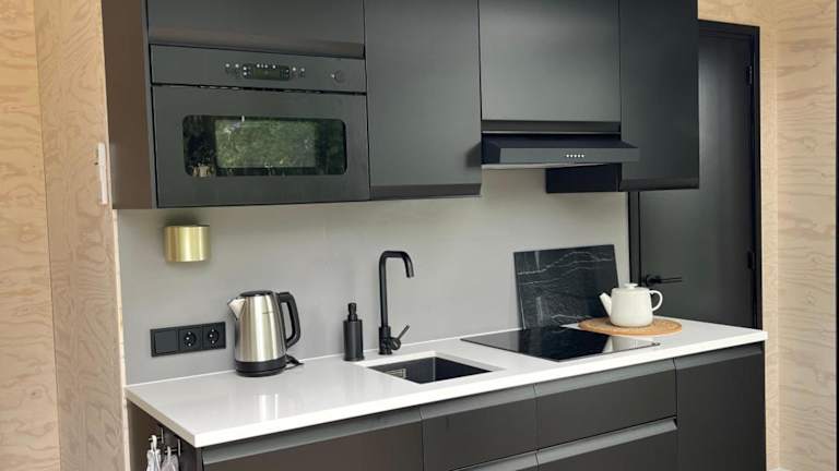 Die Unterkunft verfügt über eine voll ausgestattete Küche mit Kühlschrank, Geschirrspüler, Ofen, Herdplatte, Toaster, Kaffeemaschine und Wasserkocher. Es sind keine separaten Verpflegungsmöglichkeiten angegeben.