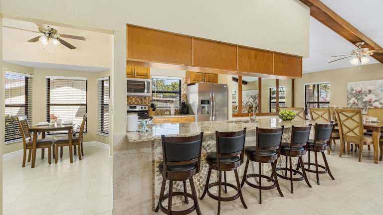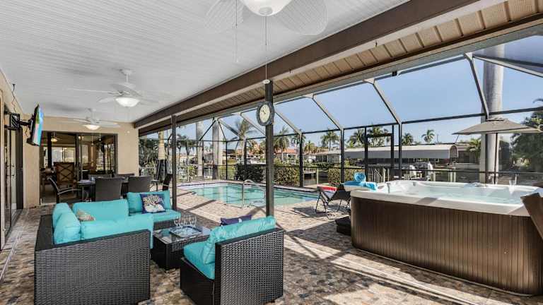 Die Anlage BRAND NEW RENTAL, Heated Pool & Spa, DIRECT Gulf access - Villa Bimini Breeze - Roelens Vacations bietet klimatisierte Übernachtungsmöglichkeiten in einer modernen Umgebung. Zur Ausstattung gehört ein eigener Pool mit Blick auf das Wasser sowie eine Terrasse.