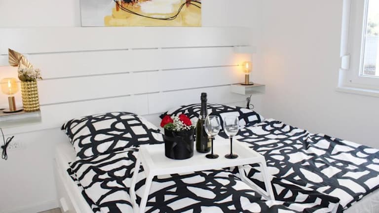 Die Wohnung verfügt über 2 Schlafzimmer, eine gut ausgestattete Küche mit Kühlschrank und Geschirrspüler, einen Flachbild-TV, einen Sitzbereich und ein Badezimmer mit Dusche. Handtücher und Bettwäsche werden bereitgestellt.