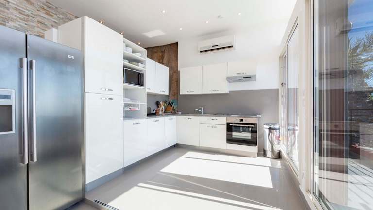 Die klimatisierte Villa verfügt über 4 Schlafzimmer, ein Wohnzimmer, eine voll ausgestattete Küche mit Kühlschrank und Kaffeemaschine sowie 3 Badezimmer mit Dusche und kostenlosen Pflegeprodukten. Handtücher und Bettwäsche werden bereitgestellt.