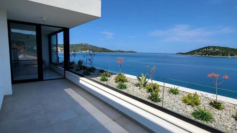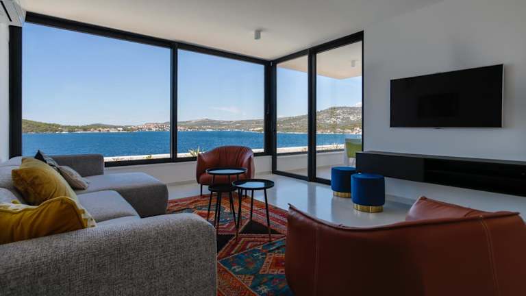 Die Unterkunft Breathtaking Seafront Elegance Luxury Penthouse bietet einen Whirlpool und zeichnet sich durch eine elegante Ausstattung aus. Sie verfügt über eine Terrasse mit Blick auf das Meer.