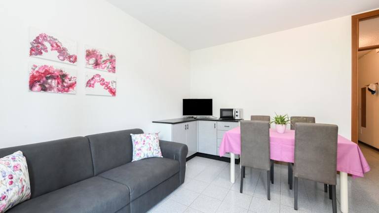 Die Ferienwohnung ist klimatisiert und verfügt über 1 Schlafzimmer, ein Wohnzimmer und eine voll ausgestattete Küche mit Kühlschrank und Kaffeemaschine. Ein Badezimmer mit Bidet und Dusche ist ebenfalls vorhanden. Handtücher und Bettwäsche werden gestellt.
