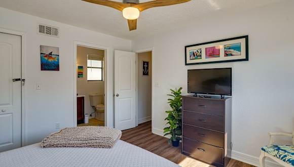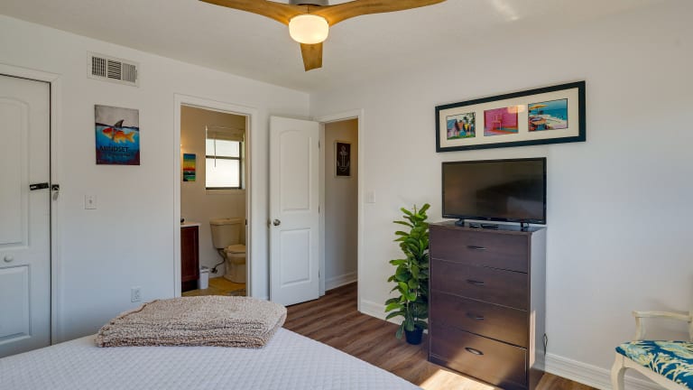 Das Ferienhaus bietet 2 Schlafzimmer, ein gemütliches Wohnzimmer und eine gut ausgestattete Küche mit Kühlschrank und Geschirrspüler. Die Unterkunft verfügt über kostenfreies WLAN und einen Flachbild-TV. Handtücher und Bettwäsche werden gestellt, so dass Sie sich um nichts kümmern müssen. Genießen Sie auch die private Terrasse, auf der Sie sich entspannen und die warme Florida-Sonne genießen können.