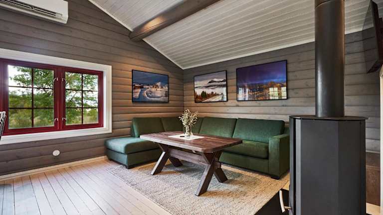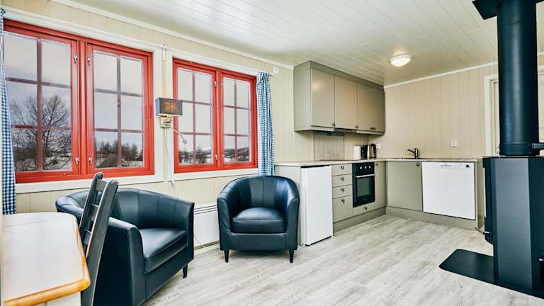 Die Hütten im Hotel Brennabu sind gemütlich eingerichtet und bieten Ihnen einen komfortablen Aufenthalt. Jede Hütte verfügt über einen Wohnbereich mit einem Sofa und einem TV, wo Sie sich entspannen können. Die Küche ist voll ausgestattet mit einem Geschirrspüler, einem Backofen, einem Kühlschrank und einer Kaffeemaschine, so dass Sie Ihre eigenen Mahlzeiten zubereiten können. Das private Badezimmer ist mit einer Dusche ausgestattet. Im Wohnbereich finden Sie auch einen Herd und kostenloses Holz, um es sich an kalten Abenden gemütlich zu machen.