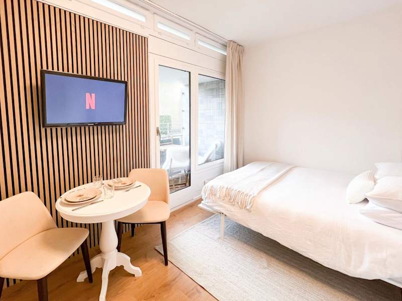 Das Bright Tiny Studio - Shared Pool & Sauna - Free Parking - Air condition bietet klimatisierte Übernachtungsmöglichkeiten mit einer Veranda oder einem Patio und kostenlosem WLAN. Es handelt sich um eine Ferienwohnung, die über einen eigenen Pool und einen Garten verfügt. Die Nutzung eines Innenpools und einer Sauna ist ebenfalls möglich, und den Gästen steht eine Sonnenterrasse zur Verfügung.