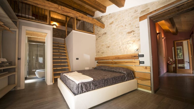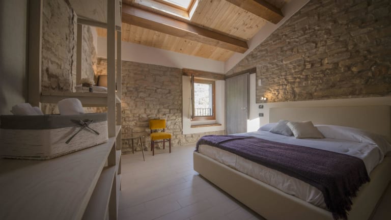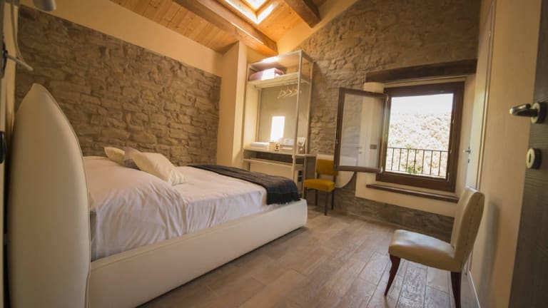 Die Zimmer im Brisighella Green Wellness Hotel sind luxuriös eingerichtet und bieten einen herrlichen Blick auf den Garten. Mit ihren freiliegenden Steinwänden und Naturholzbalken vermitteln die Zimmer ein charmantes rustikales Ambiente. Jedes Zimmer verfügt über ein eigenes Bad mit Dusche.