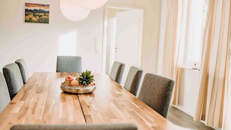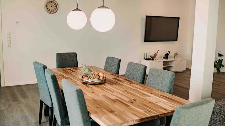 Die Ferienwohnung verfügt über vier Schlafzimmer, ein Wohnzimmer, einen TV sowie eine gut ausgestattete Küche mit Kühlschrank und Geschirrspüler. Ein Badezimmer mit Dusche ist ebenfalls vorhanden.