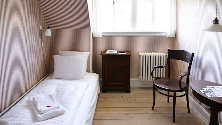 Die Zimmer im Brøndums Hotel sind hell und geschmackvoll eingerichtet. Sie befinden sich entweder im Hauptgebäude oder im Nebengebäude, Admiralgaarden. Die Zimmer verfügen entweder über ein eigenes Bad oder ein Gemeinschaftsbad. Wenn Sie ein Gemeinschaftsbad nutzen, finden Sie ein Waschbecken in Ihrem Zimmer. Die Einrichtung ist komfortabel und bietet alles, was Sie für einen angenehmen Aufenthalt benötigen.