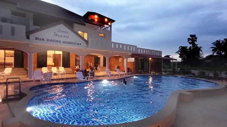 Im Bua Daeng Homestay Resort können Sie sich im Außenpool erfrischen und im Garten oder auf der Terrasse entspannen. Hier können Sie die Natur genießen und die schöne Umgebung erkunden. Das Resort bietet Ihnen auch kostenfreies WLAN, damit Sie mit Ihren Lieben in Kontakt bleiben können. Bei Bedarf steht Ihnen ein kostenpflichtiger Flughafentransfer zur Verfügung, um Ihre An- und Abreise so bequem wie möglich zu gestalten.