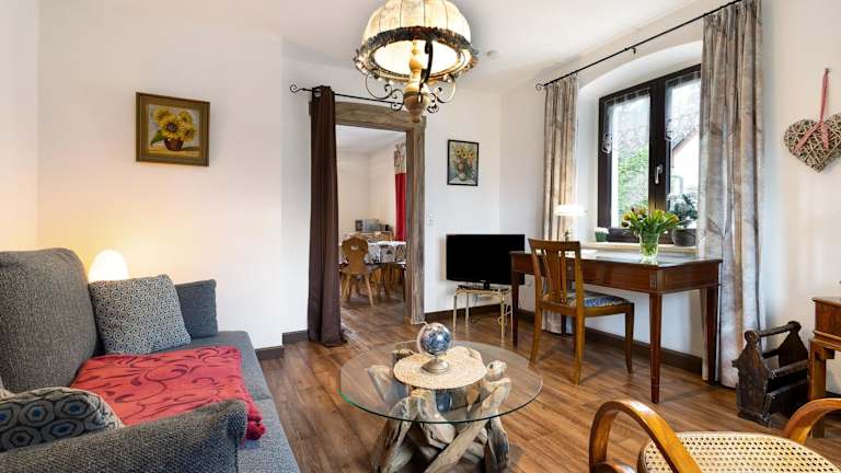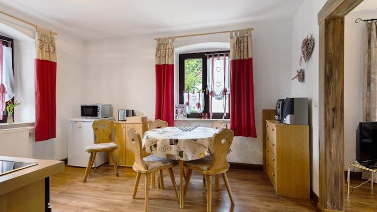 Die Ferienwohnung Buchhaus Vier - Mittelgeschoss bietet Gartenblick und verfügt über eine Terrasse sowie einen Wasserkocher. Kostenloses WLAN ist in der gesamten Unterkunft verfügbar. Die Unterkunft besteht aus einem Schlafzimmer, einem Wohnzimmer, einer voll ausgestatteten Küche und einem Badezimmer mit Dusche und kostenlosen Pflegeprodukten. Handtücher und Bettwäsche sind vorhanden. Die Ferienwohnung Buchhaus Vier - Dachgeschoss bietet ähnliche Annehmlichkeiten und ebenfalls Gartenblick.