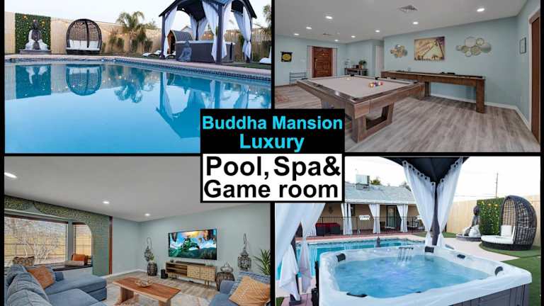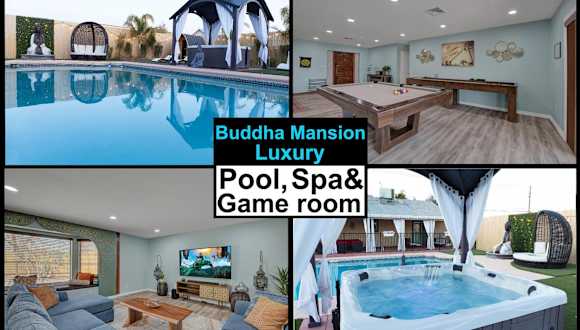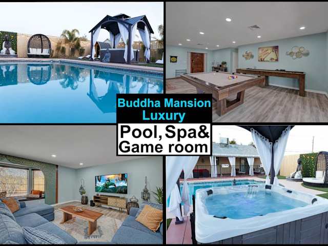 Das Buddha Mansion Luxury Resort - 8BR Modern, HotTub, Huge pool, Sauna, BBQ grill, Game Room in Las Vegas bietet Ihnen luxuriöse Unterkünfte mit einem eigenen Pool und kostenfreiem WLAN. Genießen Sie die Annehmlichkeiten wie eine Terrasse und einen Außenpool. Das klimatisierte Ferienhaus verfügt über 8 Schlafzimmer, einen TV und eine voll ausgestattete Küche. Handtücher und Bettwäsche werden gestellt. Besuchen Sie das Mob Museum und das Neon Museum, die beide nur 10 km entfernt liegen. Der internationale Flughafen Harry Reid ist nur 17 km entfernt.
