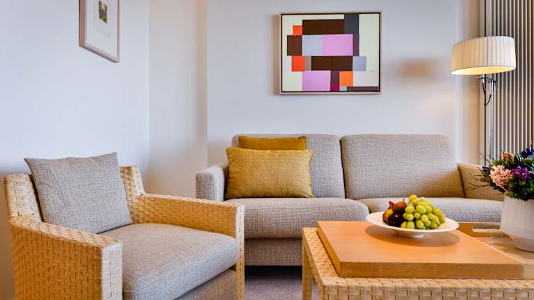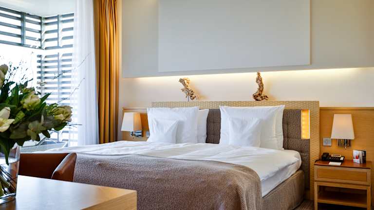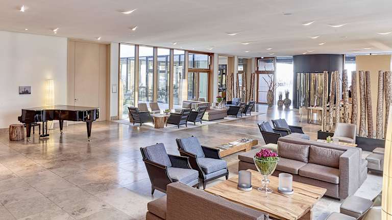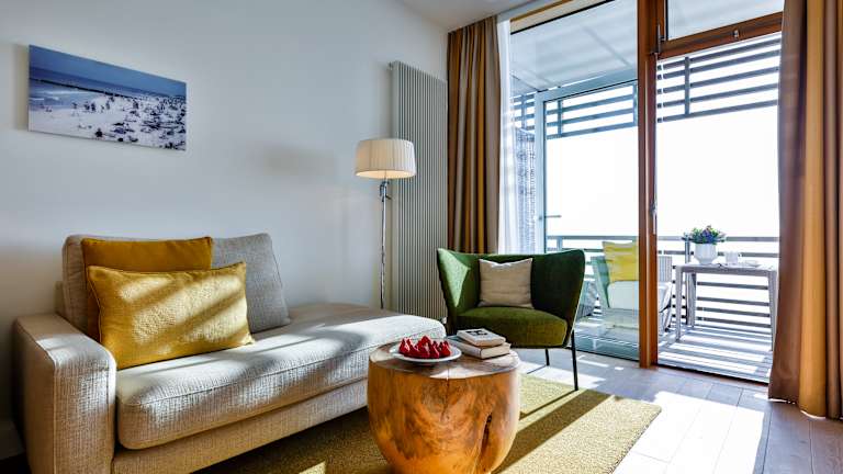 77 Zimmer und Suiten verwöhnen Sie mit traumhaften Ausblicken in alle vier Himmelsrichtungen. Bodentiefe Panoramafenster bieten Ihnen einen weiten direkten Blick auf das Meer, über den Golfplatz oder den kleinen Hörnumer Yachthafen mit Leuchtturm. Die gesamte Atmosphäre ist geprägt von Individualität und dem Sinn für Kunst und Kultur. Die moderne Innenarchitektur, zeichnet sich durch sportlich elegantes Design, mit behutsamer Dosierung von edlen exklusiven Naturmaterialien aus, dabei gilt das Motto „Weniger ist mehr“.