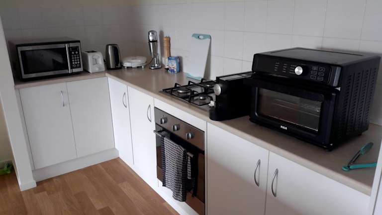 Die Unterkunft verfügt über eine Gemeinschaftsküche, in der die Gäste Annehmlichkeiten wie einen Kühlschrank, einen Ofen, eine Mikrowelle und eine Kaffeemaschine nutzen können.