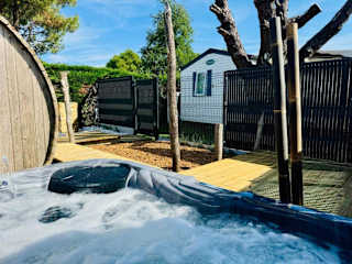 Bungalow Balnéo Jacuzzi Sauna bietet eine gut ausgestattete Unterkunft mit kostenlosem WLAN und eigenem Parkplatz. Die Einrichtung umfasst eine Sauna und einen Whirlpool, um den Aufenthalt angenehm zu gestalten. Die Unterkunft ist Nichtraucherzonen vorbehalten und bietet eine saubere Umgebung, da sie zwischen den Aufenthalten desinfiziert wird.