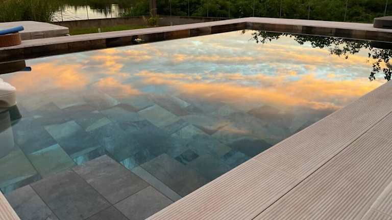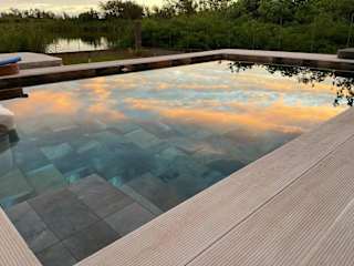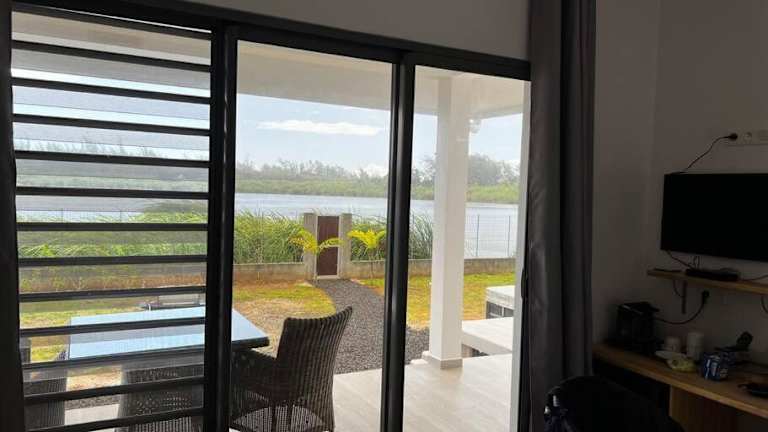 Das Ferienhaus verfügt über ein Schlafzimmer mit Zugang zu einer Terrasse und bietet zudem einen Blick auf den Pool und den See. Handtücher und Bettwäsche sind ebenfalls vorhanden.