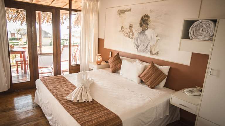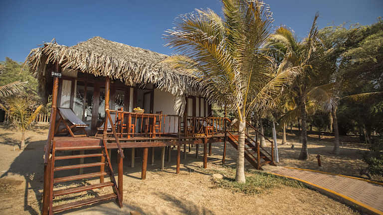 Die Bungalows im Vichayito Bungalows & Carpas sind im rustikalen Stil mit Satteldach gestaltet und bieten eine klimatisierte Unterkunft. Die Zelte sind ebenfalls komfortabel eingerichtet und verfügen über einen TV. Einige der Zelte bieten zudem eine Terrasse mit Meerblick, auf der Sie die Aussicht genießen können.