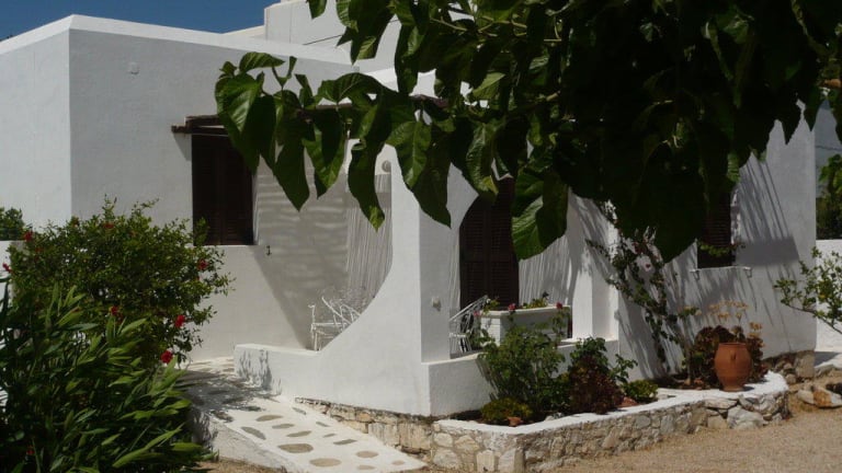 Studios und Apartments Alle Wohneinheiten sind individuell gestaltet und mit Deckenventilator, Telefon, Kochnische und W-LAN Internetzugang ausgestattet. Bei den Appartements ist jeweils eines der Zimmer Durchgangszimmer zur Dusche/WC bzw. zum Ausgang. Größtenteils sind die Betten, nach der Kykladischen Architektur, auf gemaurtem Sockeln. Alle Wohneinheiten haben eigene Balkons oder Terrassen und einige haben zusätzlich eine Dachterrasse, mit Gartenmöbeln und/ oder eingebauten Sofas, Sonnenschirm oder Pergolen.